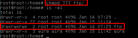 3.ketik mkdir ftp lalu ketik ls selanjutnya kita masuk ls -al untuk melihat direcktory